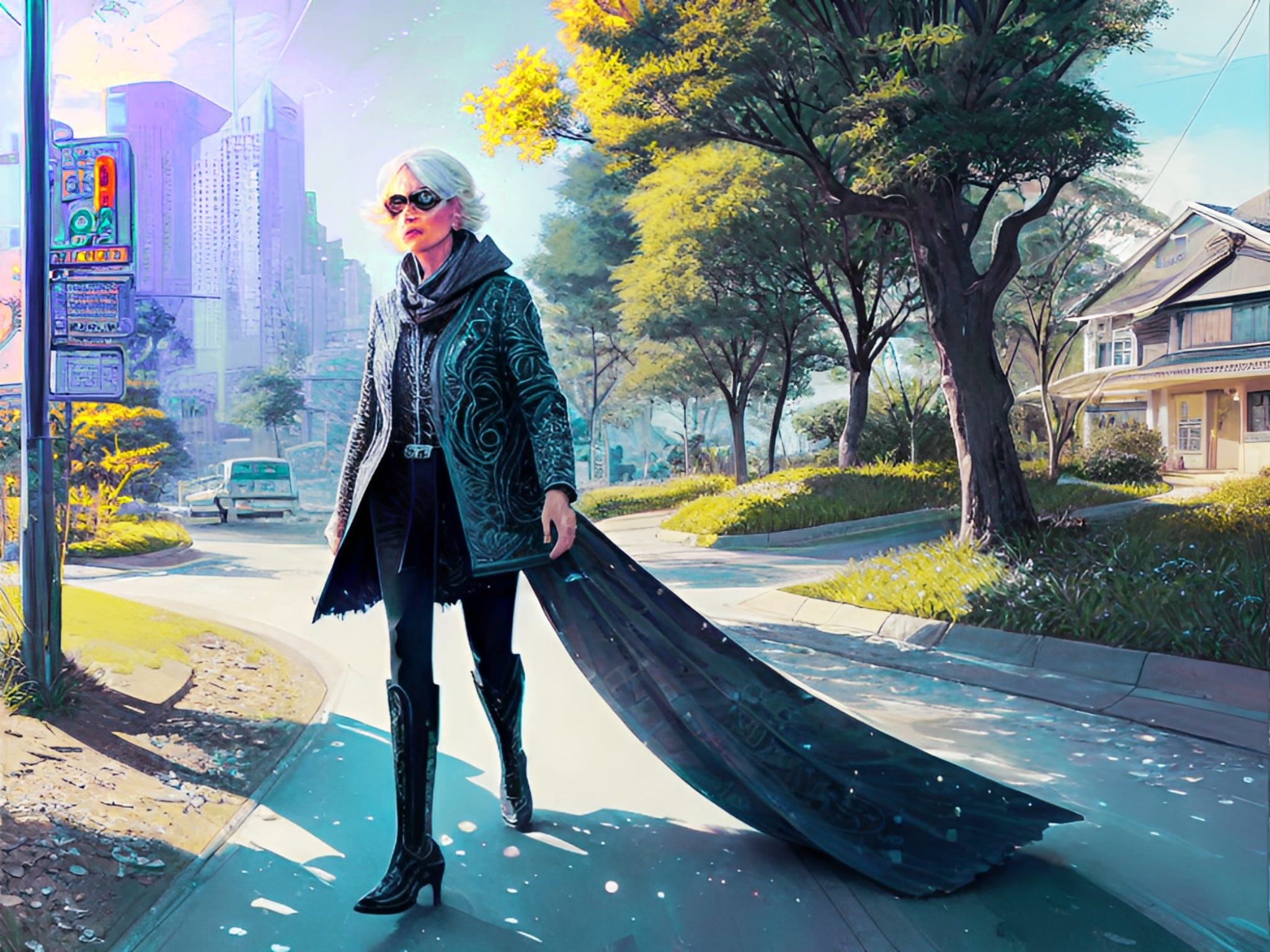 As I do, I see the street then as it is: sloping upward gently, trees lining it. The sky is blue.