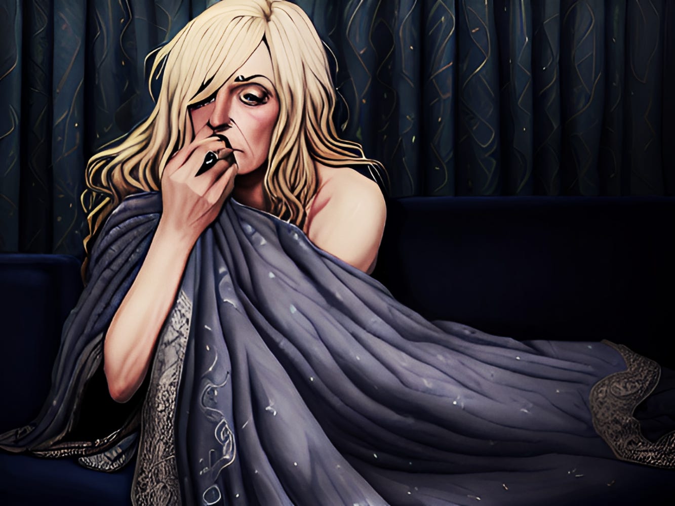 You’re quiet and I don’t know what that means. Normally I’d just ask, but I’m still under the weather, so instead I just stub out the cig and curl back up in my old woman blanket on the blue velvet couch.