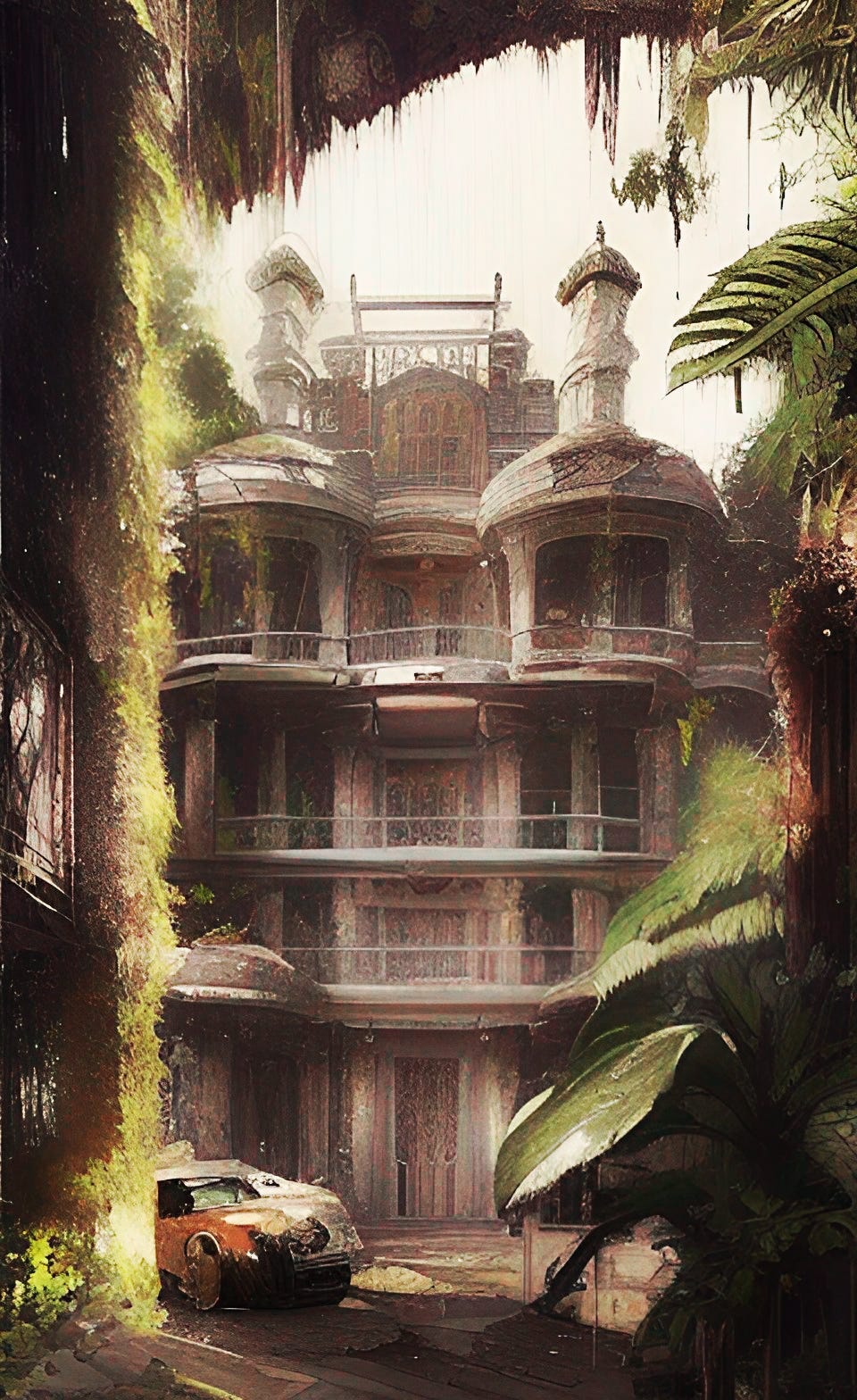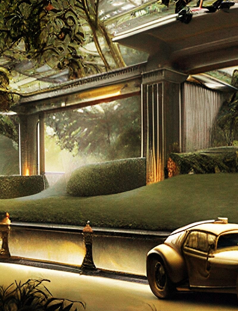 Out there in the cleared Jungle, there’s some hills and lots of grass. Everything is manicured, but not like sculpture exactly, not like topiary; that would be gauche and gaudy. No this is engineered to give the impression that the natural Meezed is a flawless beauty, that the denizens of the clan-lands are, in fact, the chosen people living in their chosen land, a blissful quasi-tropical utopia of pearly-gated estates, wide-deep-long manor lawns, and ‘wild’ plant life that gracefully eases itself over the manmade bits. It’s a show, a farce, a set.