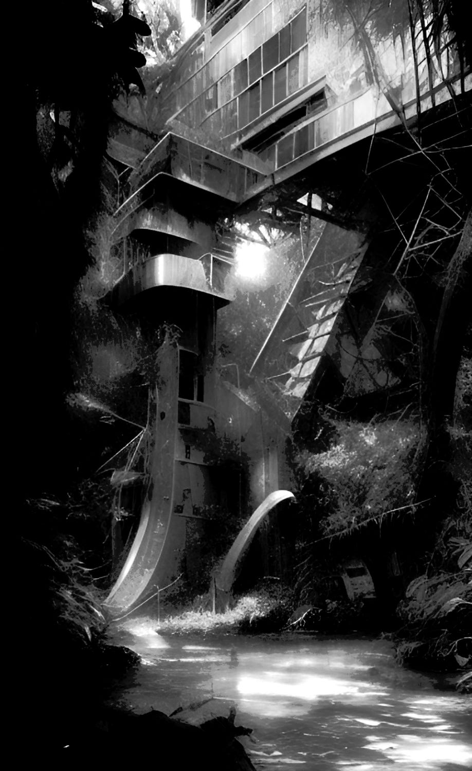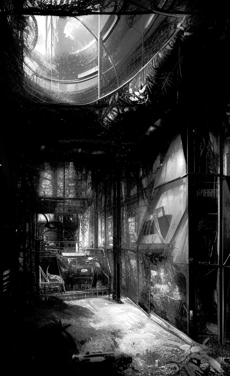 The studio is a converted waystation, so it used to be a small shop and stop where folks would buy shit and recharge or refuel their cars—that kind of thing. But it had been abandoned decades ago, and he’s since gutted it and made it into a workshop.