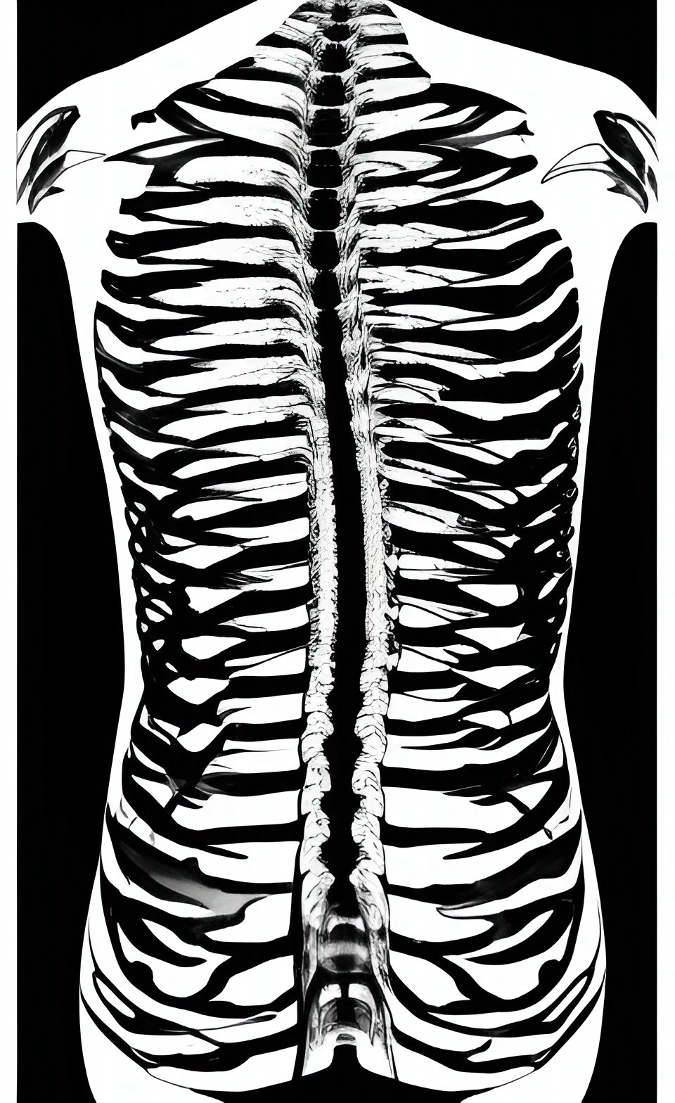 The doctor looked at the x-ray, then said, “As you can see, the vertebrae are completely fused here at the top of the spinal column. The ones at the bottom there are becoming fused. And the spine itself is actually quite curved now, as you can see.”