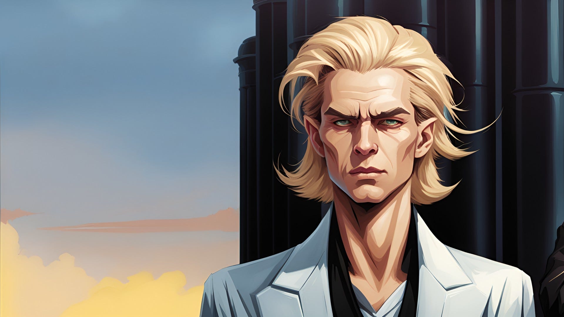 We eat in the hotel restaurant—The Jack-Bull—and in there, we are joined by Annsilon and Morgoreet. Morgoreet is the local sheriff, but don’t worry about that right now. We’ll get to that another time. Annsilon is a secretist, like Avan and I. Marlowe is a piece of shit barrister from the Galactic Homeworld—like me—who grew up on the Jungle Planet—like me—then moved to the Far Shores to make big money, piece of shit that they are. Morgoreet is shorter than I am by a good bit. Avan and Annsilon are about half a head shorter than I am, and Marlowe is, like, a head and a half taller than I am. I don’t know how relevant any of that is. Just some details for you.