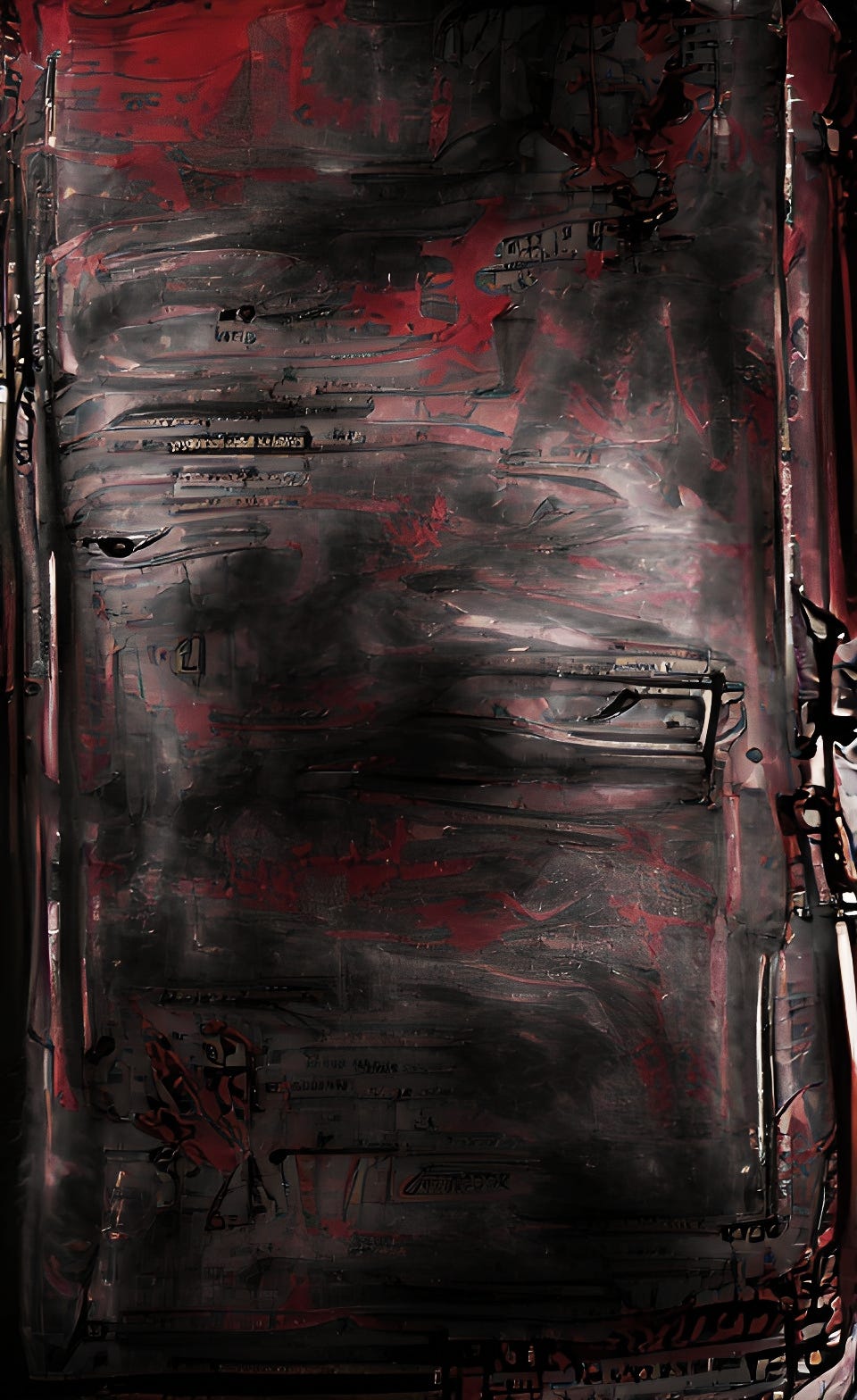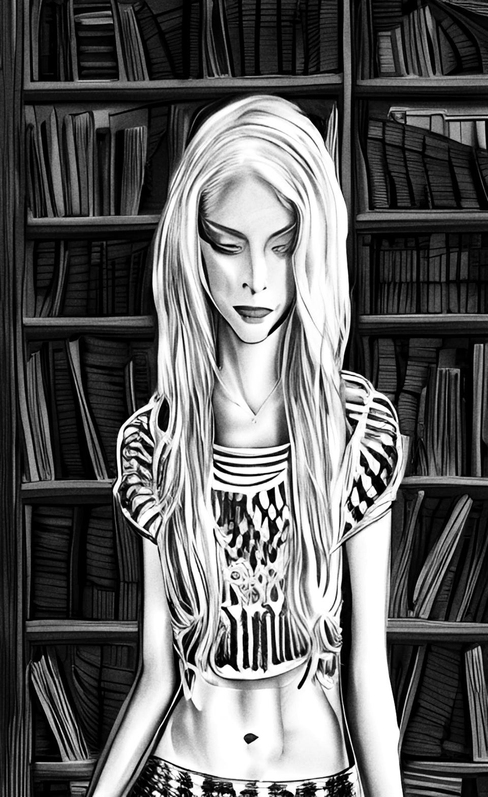 You walk to the off-center bookshelf in the left portion of the wall. About two rows from the bottom—not all the way on the ground, but low enough you have to squat or bend to reach it—is a thick spined book. Upon seeing it closer, it looks oily, the spine. You wonder if it’s a trick of the light, and want to pull it from the shelf.