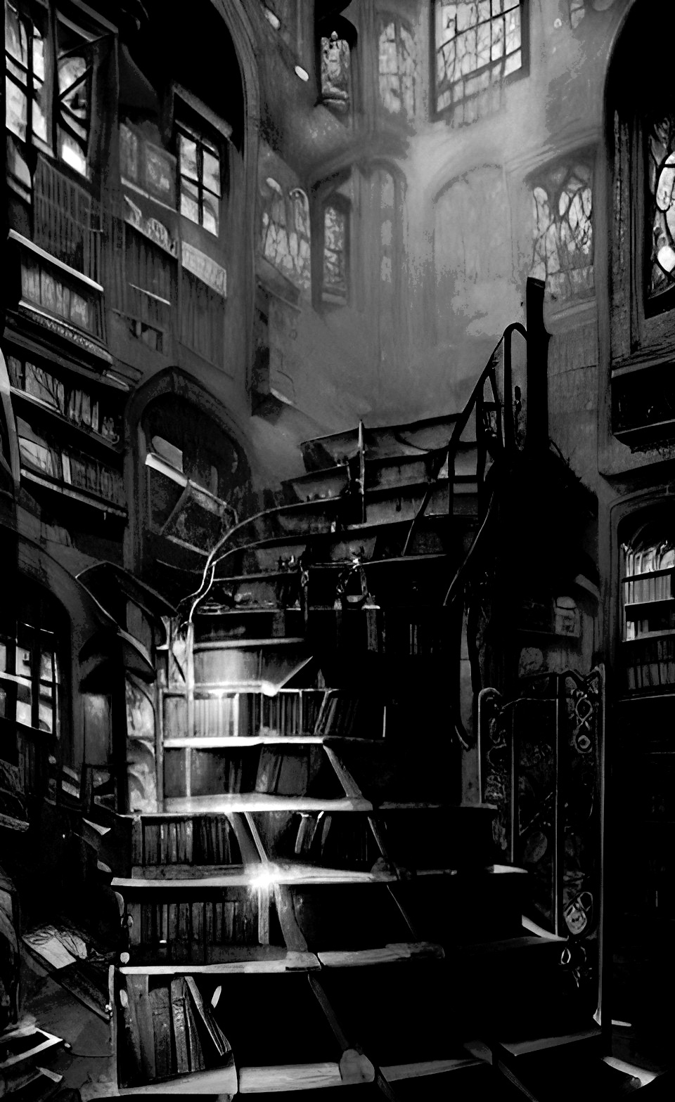 After we descend a small staircase, you look back at it and see that the steps themselves are bookshelves.
