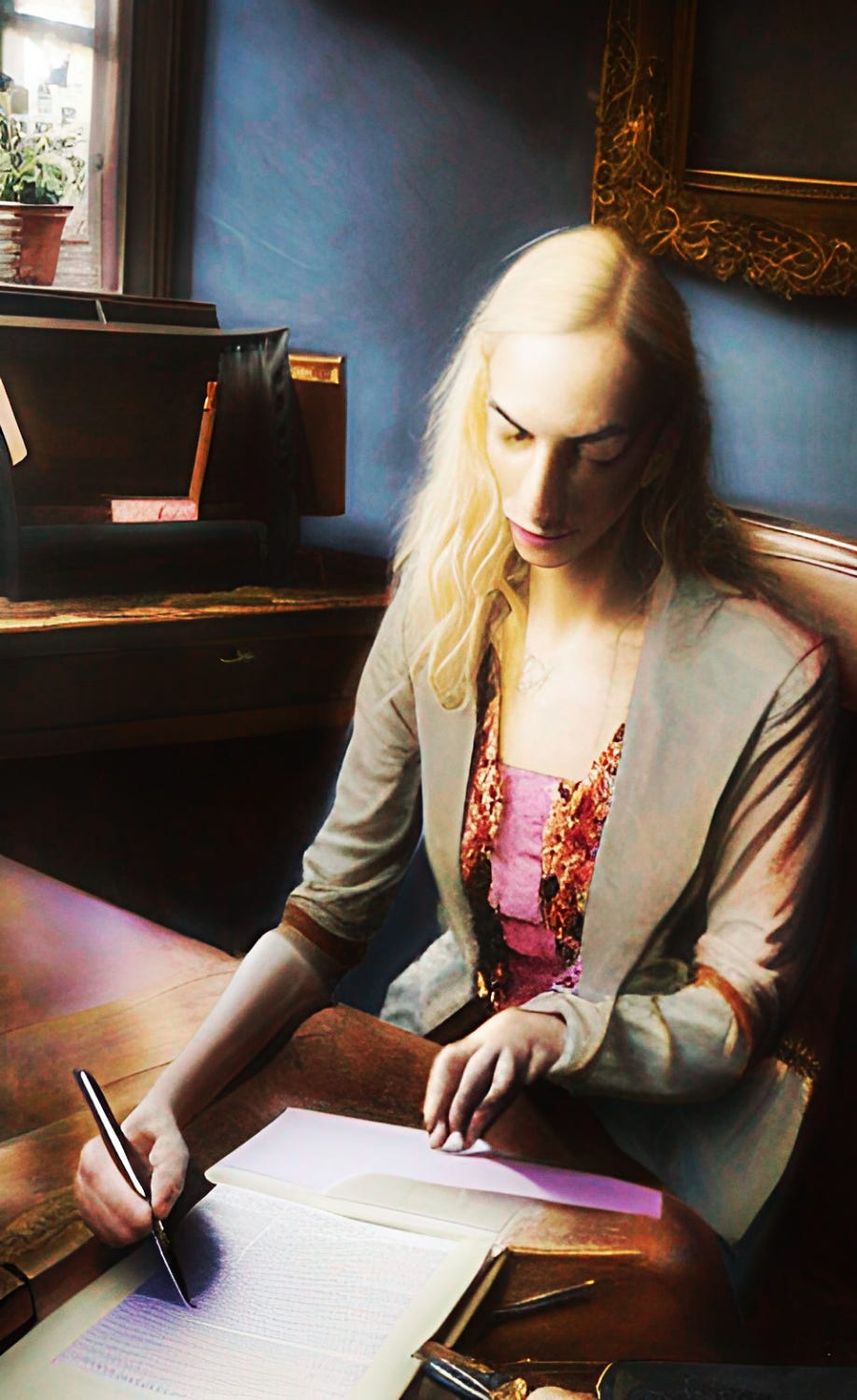 “Well he was an alcoholic, as many Taurans are. So that was difficult. But somewhere around when I turned eighteen or nineteen, he promised to stop drinking around me, and that made things much better between us. I lent him my copy of Slaughterhouse-Five once.”