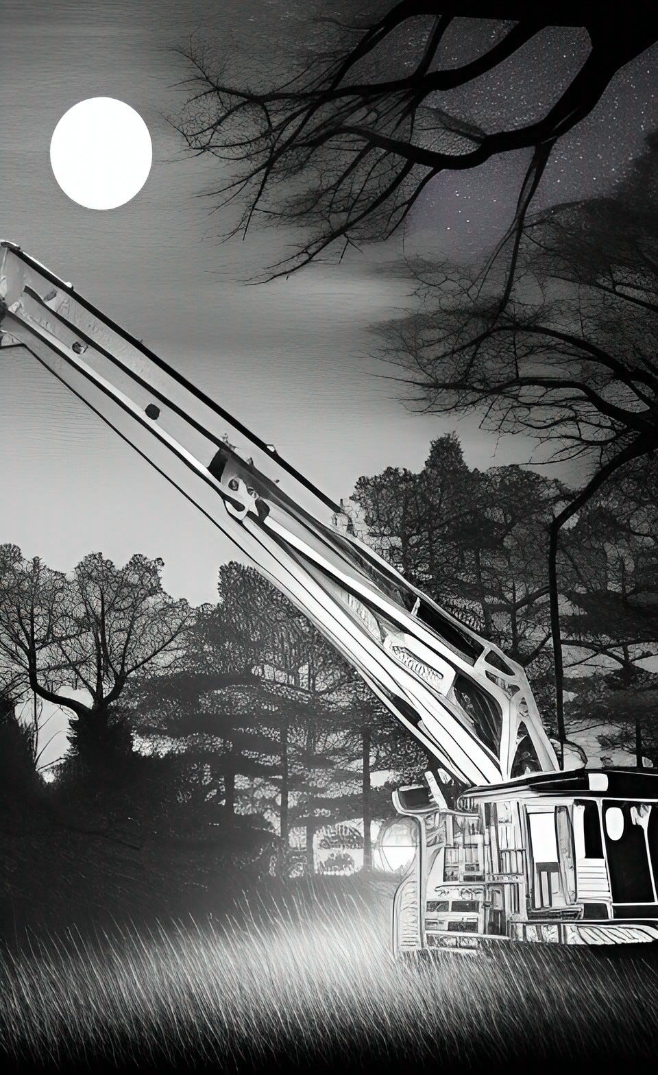 Near the crane, there’s some soft glowing fungus. The crane itself was lit by a beam of moonlight, but the whole area seemed much brighter than it should have been on this dark a night. We’d picked a dark night, after all, for the cover it provided us while we were shopping cow pastures.
