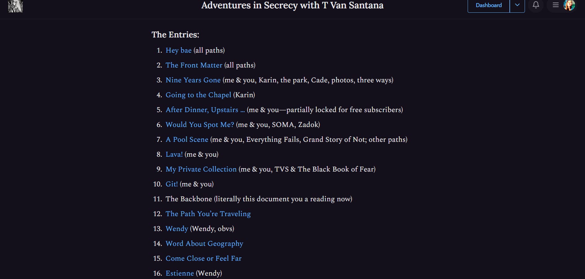 Now, if you are an app lover, then I know there is not convincing you, so please just carry on. But the real experience is on the website, in desktop form. That is the best version of the site, both in terms of features and completeness. So if you want the optimal experience, that is where you should read Adventures in Secrecy. Having said that, I’m grateful, truly, if you’ve read a word I’ve written through any outlet. This is simply so you understand what I’m thinking, why, and what your options are.